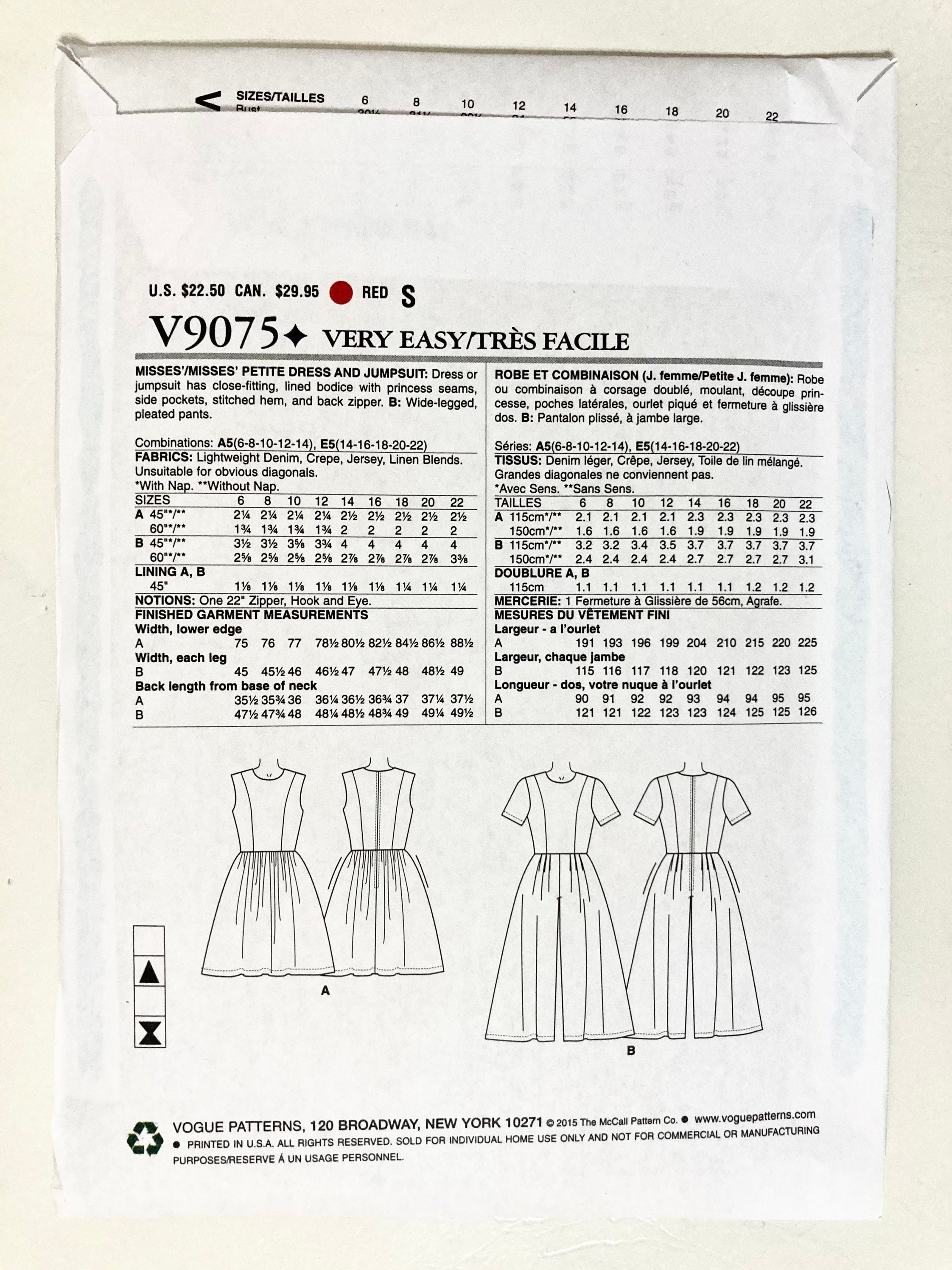Sewing Pattern For Dress Jumpsuit Vogue 9075 Very Easy Etsy